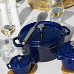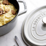 Gdy w produkcji naczyń maczają palce najlepsi kucharze świata, można spodziewać się niezwykłych rezultatów. Takich, jak doskonałe, żeliwne naczynia francuskiej marki Staub. Każde z nich pokryte jest kilkukrotnie nakładaną, porcelanową emalią, która zapobiega przywieraniu potraw. Efektem współpracy z szefami kuchni są unikatowe pokrywki, w których wnętrzu znajdują się specjalne wypustki. To rozwiązanie pomaga zachować do 30% więcej wilgoci w przygotowywanych potrawach. Żeliwo, z którego wykonane są garnki, ma moc intensyfikowania smaku potraw, więc ugotowane w nich dania są wyjątkowo soczyste i smaczne. Gotowanie w tych niezwykłych naczyniach jest jak ponowne odkrywanie smaku mięsa, warzyw i ryb.